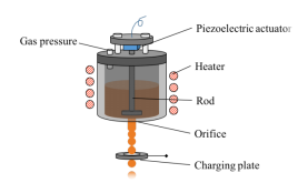 喷射成型:对熔融后的铜料施加气压,在气压作用下,铜液经喷孔射出,形成连续稳定的液柱。压电陶瓷换能器带动传动杆产生高频机械振动,在喷孔附近对这股连续液柱施加特定频率的周期性扰动。通过控制铜液喷射压力与扰动,连续液柱可以精确地断裂成一个个独立的、尺寸高度一致的均匀液滴。